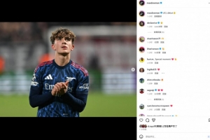 本场比赛15岁道曼替补登场,成为欧冠历史出场最年轻球员,赛后他也在社媒晒出本场照片,配文写道:“欧冠首秀!”
