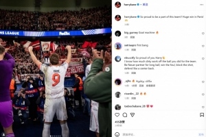 体育资讯11月5日讯 拜仁在本轮欧冠焦点战2-1力克巴黎,凯恩在赛后通过社媒庆祝胜利。