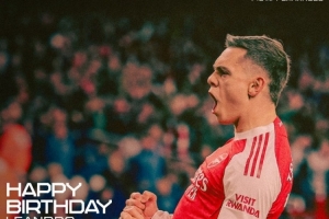 阿森纳官方社媒晒出为特罗萨德制作的生日海报,配文:“生日快乐,莱安德罗!”