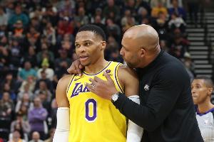 今日,湖人记者Harrison Faigen在个人社交媒体上发布了一张图(如下),并配文:“只有一个人能执教拉文+莫兰特+威少的后场。”