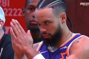 GIF-火箭为狄龙播放致敬视频 后者向全场观众示意