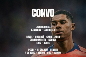 前锋:费兰·托雷斯、莱万、亚马尔、拉菲尼亚、拉什福德、巴德吉