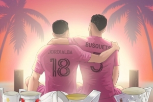 此役阿尔巴、布斯克茨为迈阿密国际踢满全场,两人本赛季结束后退役。美职联官方社媒晒出为阿尔巴、布斯克茨制作的海报,配文:“怀抱最后一座奖杯,并肩策马,步入夕阳。约迪·阿尔巴🤝塞尔吉奥·布斯克茨。”