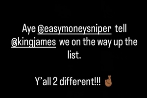 赛后,杜兰特在INS祝贺哈登跻身NBA得分历史前十。哈登则写道:“是的,杜兰特,告诉詹姆斯,我们两个人的排名都在上升。你们两人都是与众不同的。”