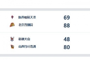 山西竹叶青酒80-48新疆天山,林育庭独得19分6助攻,霍俊彤18分,埃格博12分8篮板。新疆女篮武桐桐17分5助攻,莫普雷米尔10分14篮板。