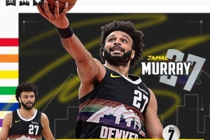穆雷上周率队取得3胜1负的战绩,场均可以得到29.8分7.5助攻,三分命中率高达62.1%。