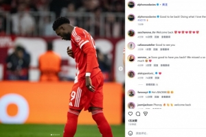 体育资讯12月10日讯 拜仁在本轮欧冠3-1逆转葡体,阿方索·戴维斯最后时刻伤愈替补登场。