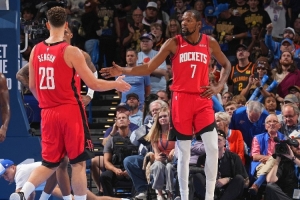 “这就是为什么他是凯文·杜兰特,这就是为什么他是联盟和历史最佳得分手之一,他付出的很多努力你可能看不到,但这就是他19年如一日所坚持的,他很感激自己所处的位置,无论他去哪里,他总是能融入球队,我们也很感激能和他一起打球,他知道如何帮助我们,如何赢得比赛,这就是我们的比赛方式。”