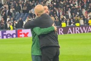 体育资讯12月11日讯 欧冠第6轮曼城客场2-1逆转击败皇马,赛后瓜迪奥拉被拍到与弟子谢尔基亲切交流。