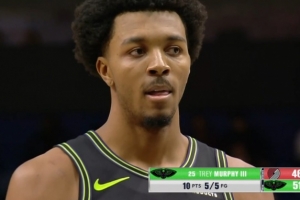 超远距离!特雷·杨后场长传助飞库利巴利空接暴扣