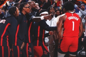 本场比赛,火箭球员阿门·汤普森高效发挥,打了41分钟12投8中,三分3中0、罚球4中4拿到20分9篮板8助攻1抢断,正负值+8。