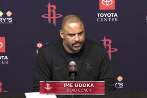 体育资讯12月12日讯 NBA常规赛,火箭115-113击败快船,赛后,火箭主教练乌度卡出席新闻发布会,接受记者的采访。