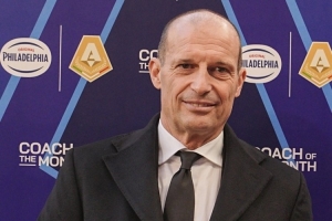 米兰主帅阿莱格里11月带队参加4场意甲比赛,战绩3胜1平,当选11月意甲最佳主帅,阿莱格里在赛前领取了奖杯。