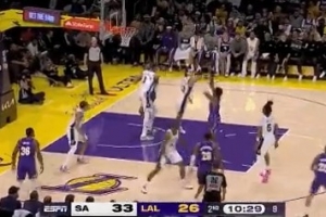 场边库里看高兴了!小佩顿外线连中两记三分球 勇士领先19分打停