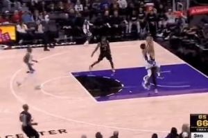 GIF-克利福德反击撞倒波杰姆斯基裁判吹进攻犯规;国王挑战成功变防守犯规