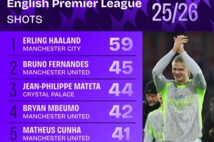 体育资讯12月19日讯 数据机构squawka统计了本赛季英超射门和射正次数榜,哈兰德同时领跑,B费射门第二多、姆伯莫射正第二多。