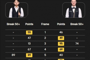 全场比赛,双方各打出1杆50+。袁思俊在先胜1局的情况下连丢3局,最终2-4不敌韦克林。