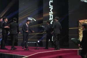 体育资讯12月19日讯 Gumayusi获得年度AD奖,T1选手们给他送花