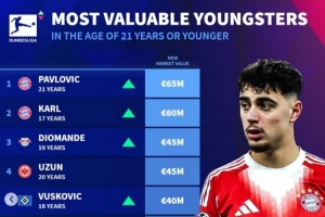 体育资讯12月19日讯 《转会市场》今日更新了德甲球员身价,并统计了德甲U21球员身价榜。