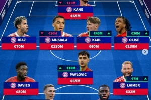 中场:路易斯·迪亚斯(拜仁慕尼黑,7000万)、贾马尔·穆西亚拉(拜仁慕尼黑,1.3亿)、亚历山大·帕夫洛维奇(拜仁慕尼黑,6500万)、伦纳特·卡尔(拜仁慕尼黑,6000万)、迈克尔·奥利塞(拜仁慕尼黑,1.3亿)