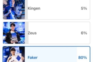 2.7万人的投票中,DRX上单Kingen仅占5%,Faker高达80%