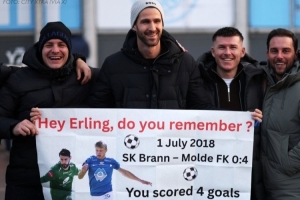 拉德林格提到了2018年哈兰德身披莫尔德球衣对阵布兰时,对他上演大四喜的往事。