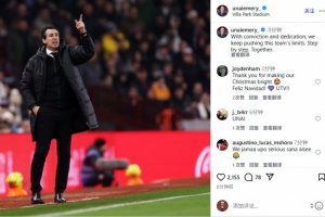 体育资讯12月22日讯 今天凌晨,维拉在英超主场2-1击败曼联,球队主帅埃梅里赛后在Instagram发文庆祝胜利。