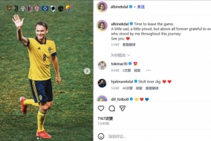埃克达尔写道:“是时候告别这场比赛了。有一点难过,有一点自豪,但最重要的是永远感激在这段旅程中一直支持我的每一个人。再见❤️”