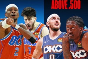 目前雷霆战机25胜3负,联盟第一。但其中只有6场胜利是对阵胜率50%+的球队。