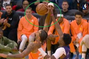 因此,米勒这次纯打手等于纯打球,裁判起初吹罚了米勒打手犯规,黄蜂挑战成功!