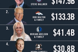 排在第四的是亨利·塞缪尔,他是冰球安纳海姆鸭队老板。