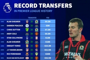 1992年 阿兰-希勒:450万欧(南安普顿→布莱克本)