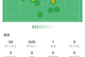 阿苏埃53分钟1次射门0射正,11次触球5次传球,3次丢失球权。1次解围、1次成功抢断,1次地面对抗成功。