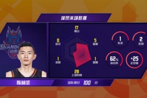 1月2日,2025-2026赛季CBA联赛常规赛第9轮,山东高速主场100-85战胜新疆伊力特,收获2连胜。本赛季加入球队的前锋陈林坚发挥出色,8投5中,得到本队国内球员最高分17分,其中包含3记三分球。本场比赛过后,陈林坚职业生涯三分球命中总数达到了1000记,成功解锁个人新成就。