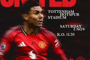 曼联官方社媒发布赛前海报,卡塞米罗单人出镜。曼联5胜2平3负积17分,排在英超第8位,热刺同积17分排在第6位。