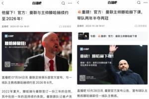 2024年7月,曼联续约滕哈赫,但3个月后就将他解雇。