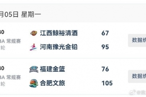 2025-2026赛季WCBA常规赛今日仅两场B组比赛。河南和合肥两队均毫无悬念在客场收获大胜。