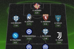 中场:马泰奥·波利塔诺(那不勒斯,8.02分)、哈坎·恰尔汗奥卢(国际米兰,8.19分)、卢卡斯·达·库尼亚(科莫,7.68分)、凯南·伊尔迪兹(尤文图斯,8.54分)