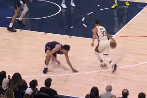 崴脚+膝盖过度伸展!字母哥扣篮落地失衡 捂着左膝!