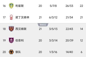 体育资讯01月07日讯 英超第21轮先赛一场,西汉姆联1-2不敌诺丁汉森林,落后安全区已经7分。