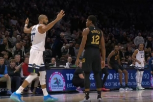 表情包+1!哈滕弧顶挡拆下蛋助麦凯恩命中三分 鸭梨场边捂嘴惊叹