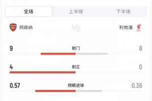 体育资讯01月09日讯 利物浦0-0战平阿森纳,全场比赛利物浦完成8次射门但没有1次射正。