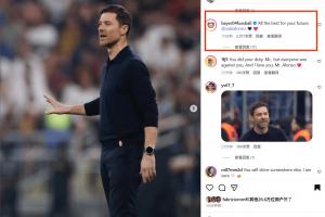 体育资讯01月13日讯 今日哈维·阿隆索在社媒告别了皇马,勒沃库森官推在他的帖文下评论:祝你未来一切顺利🖤❤️