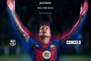 坎塞洛正式成为巴萨球员,巴萨与利雅得新月达成协议,坎塞洛将租借加盟至本赛季结束,他将身披2号球衣。