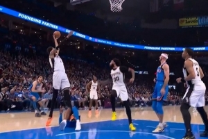 先推人了呀!麦克布莱德抛投不中 米切尔·罗宾逊单臂隔扣库明加