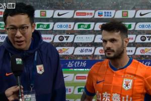 体育资讯11月01日讯 中超第29轮,山东泰山2-1战胜天津津门虎,卡扎伊什维利破门+失点,赛后他在接受采访时感谢了克雷桑的让点。