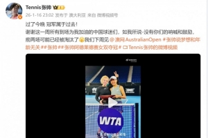 体育资讯1月16日讯 WTA500阿德莱德站女双决赛,2号种子张帅/西尼亚科娃以2-0击败奇琴诺克/克劳茨克成功夺冠。赛后,张帅更新社媒谈到感想。
