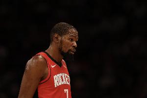 上半场比赛,在小贾巴里·史密斯手感出色的情况下,杜兰特的出手并不多,他出战16分钟,4投3中,三分2投1中,罚球2罚1中,得到8分1篮板4助攻1抢断,出现1次失误,正负值+8。