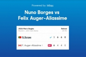 加拿大名将阿利亚西姆在澳网男单首轮对阵博尔热斯,这位赛会7号种子在6-3 4-6 4-6大比分1-2落后时因伤退赛,博尔热斯因此晋级男单次轮,阿利亚西姆也成为首位掉队的男单前八种子。