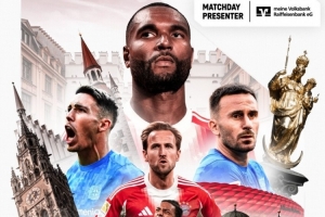 拜仁官方社媒发布了赛前海报,凯恩、奥利塞、若纳坦-塔出镜。配文:“我们的城市,我们的球迷,我们的球场。我们期待今晚主场对阵勒沃库森的比赛。”
